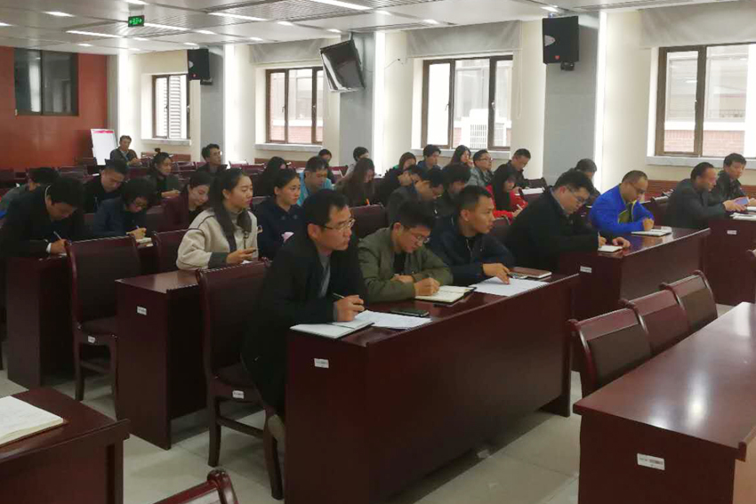 动员大会结束后,校教务处处长、校评建办主任严海平从审核评估的目的、审核评估的基本内容、审核评估考察方式等方面为大家进行了第一次业务培训。