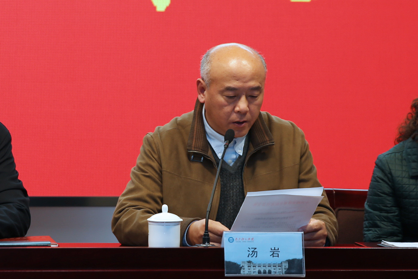 校党委副书记、副校长汤岩宣读马克主义学院成立等文件