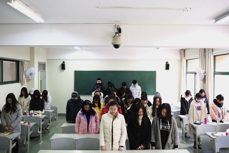 当天上午10:01,随着防空警报响彻南京上空,南体师生在教室、图书馆、训练馆、实验室等静静地为遇难同胞默哀,铭记历史,祈愿和平。