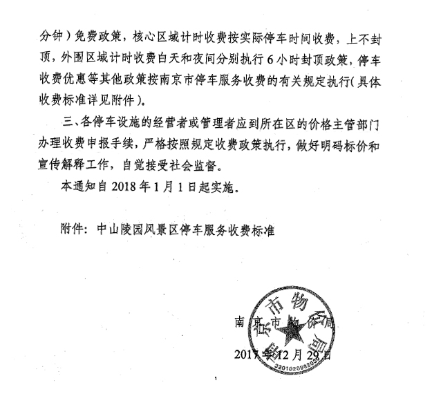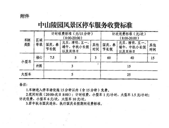 应南京市政府引导绿色出行、低碳出行,优化中山陵风景区及周边交通的文件精神,根据宁价费【2017】300号文件规定,针对临时进入PA视讯灵谷寺校区内的车辆,停车服务收费标准调整如下: