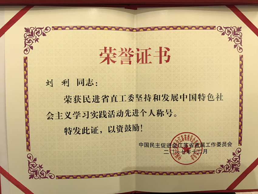 刘利老师被民进省直工委评为“坚持和发展中国特色社会主义学习实践活动先进个人”