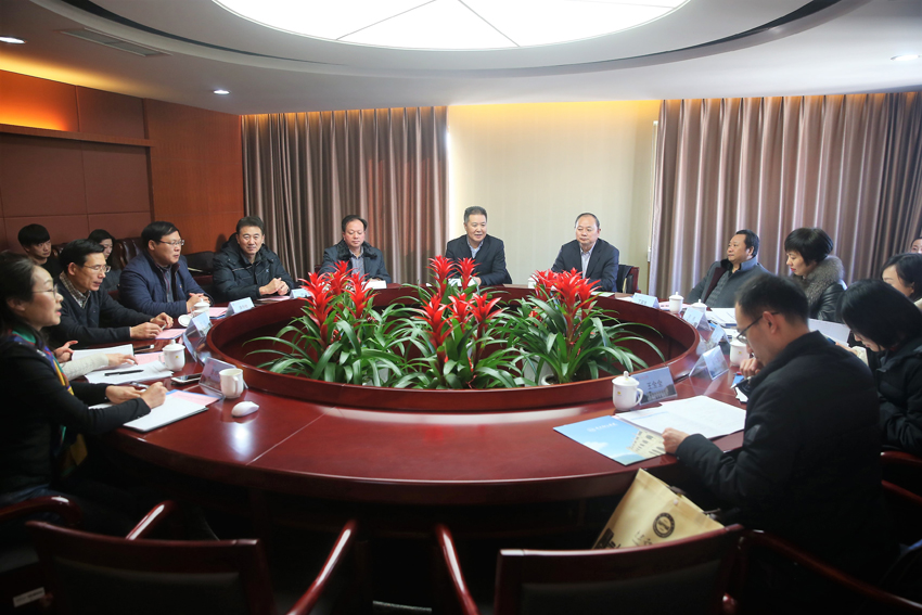 汇报会现场,校党委书记朱传耿致欢迎辞