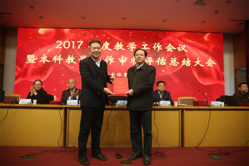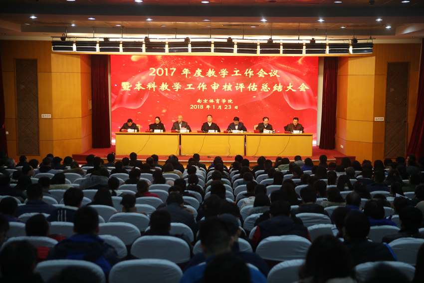 1月23日下午,PA视讯2017年度教学工作会议暨本科教学审核评估工作总结会议在校图书馆报告厅召开。校党委书记朱传耿,校党委副书记、校长杨国庆,校党委副书记、副校长汤岩,副校长史国生,副校长李江,副校长金松,总会计师黄步龙出席会议。校各高教单位、部门全体教职工,校本科教学督导组全体成员,校机关、后勤各部门负责人,竞技训练学院负责人,奥林匹克学院部分领导和教师代表参加会议。会议由校党委副书记、副校长汤岩主持。