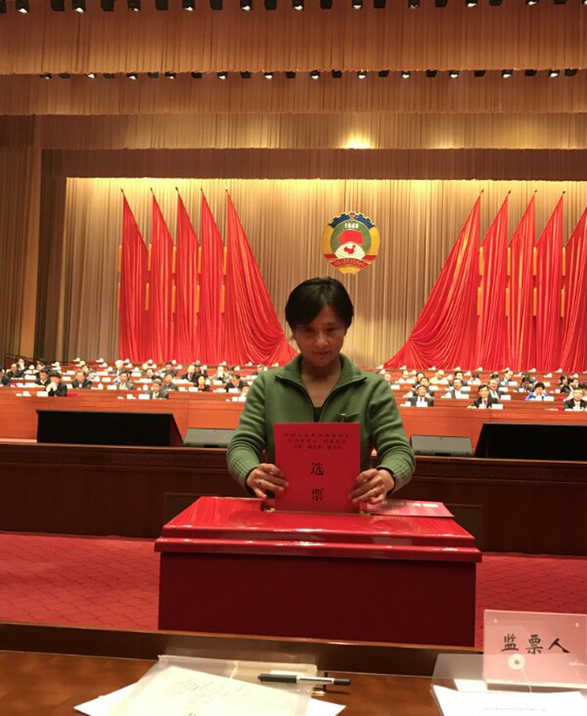 体操队教练、校民进主委、十二届省政协委员袁紫鹃在会上投票