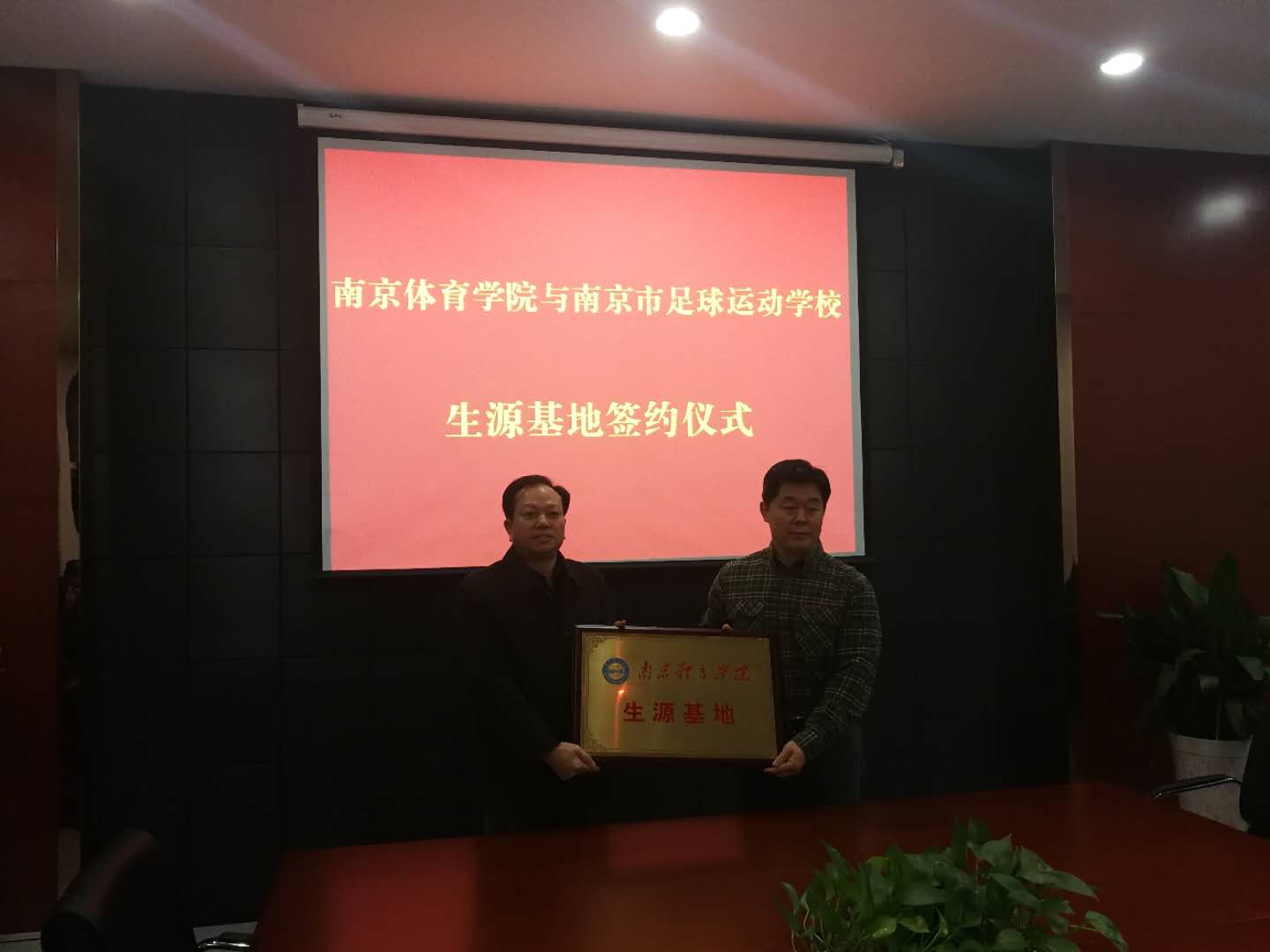 史国生介绍了PA视讯办学的基本概况,以及PA视讯2017年在第13届全运会上取得的优异成绩、圆满完成本科教学工作审核评估、学校获“研究生免试保送”资格、获得省博士授予权单位立项建设等方面的情况;希望借助生源基地的平台,实现双赢,吸引更多的优秀运动员学生报考PA视讯,深化两校之间的沟通合作。史国生向南京市足球运动学校闵永健校长授予生源基地牌匾。