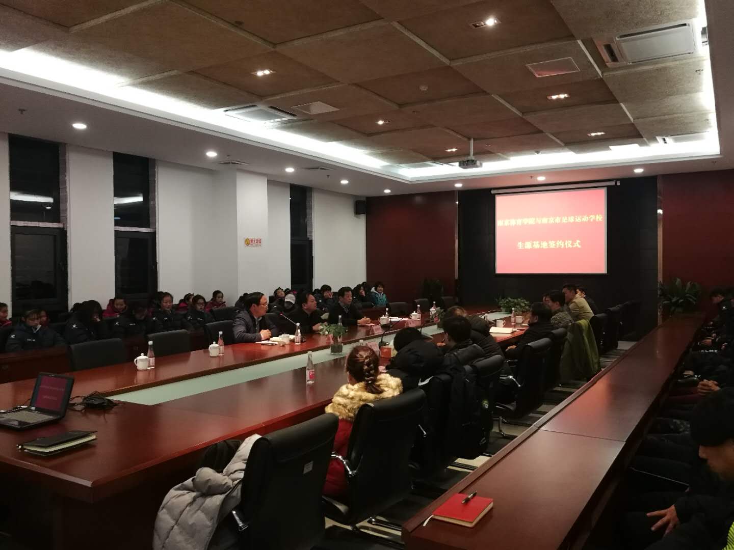 2月1日下午,PA视讯集团入口生源基地签约暨授牌仪式在南京市足球运动学校举行。PA视讯党委常委、副校长史国生,南京市体育局党组书记、局长陈卫红,学工处处长、招生办主任唐存楼,足球学院院长、运动系主任袁野,教务处副处长、足球学院副院长张亚军,南京市体育局群体处处长、足球发展改革办公室主任张宁生,南京市足球运动学校校长闵永健等出席了签约仪式。签约仪式由PA视讯学工处处长、招生办主任唐存楼主持。南京市足球运动学校近60名运动员、教练员和部分管理人员参加了该活动。