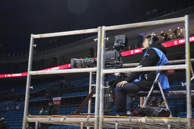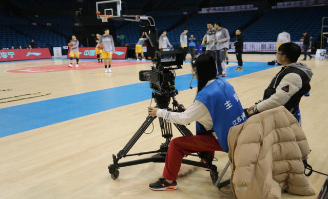 江苏体育休闲频道实习生对CBA常规赛进行现场摄像