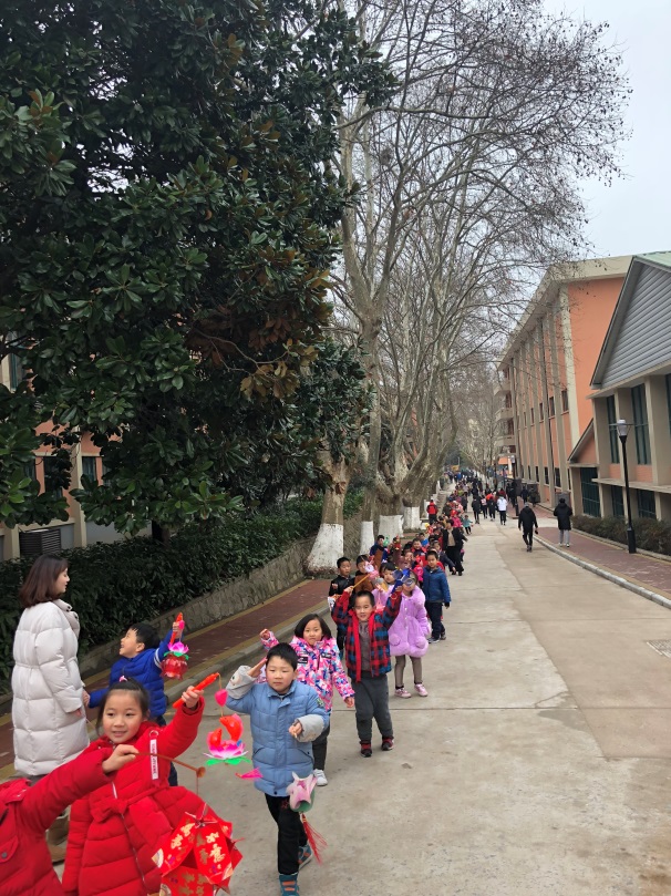 老师和孩子们围坐在一起搓元宵、吃元宵,讲述元宵节的起源与习俗,传递着快乐与祥和。孩子们开心地提着灯笼,在教师带领下巡游校园,把元宵传统佳节过得有滋有味、热热闹闹。