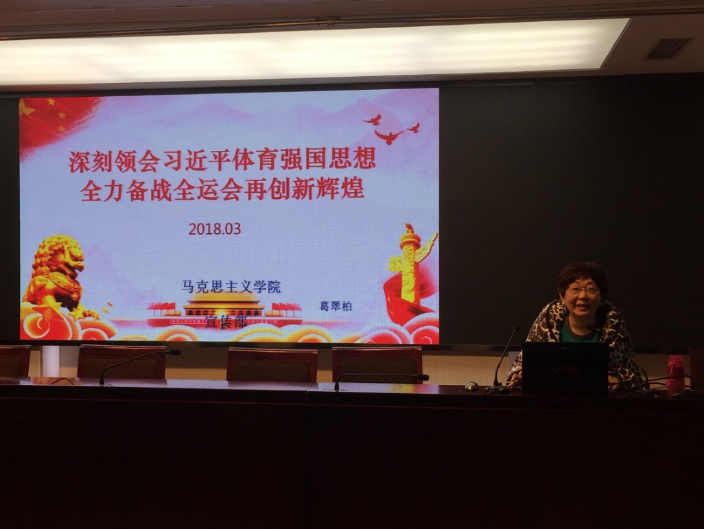 3月7日上午,PA视讯集团入口竞技训练学院在办公楼101会议室开展十九大精神专题学习。校党委宣传部副部长、马克思主义学院副院长葛翠柏为竞技训练学院全体教练员和管理干部作了主题为“深刻领会习近平体育强国思想,全力备战全运会再创新辉煌”的十九大精神专题宣讲。