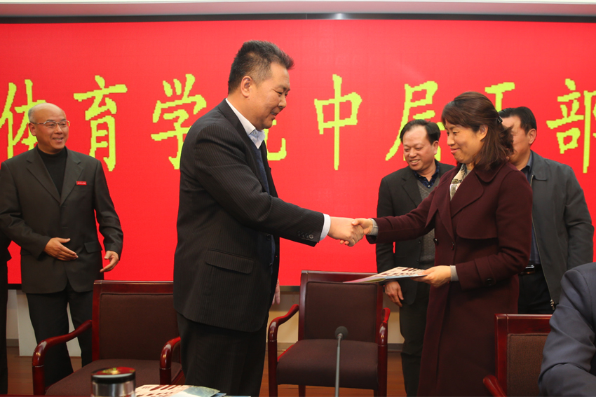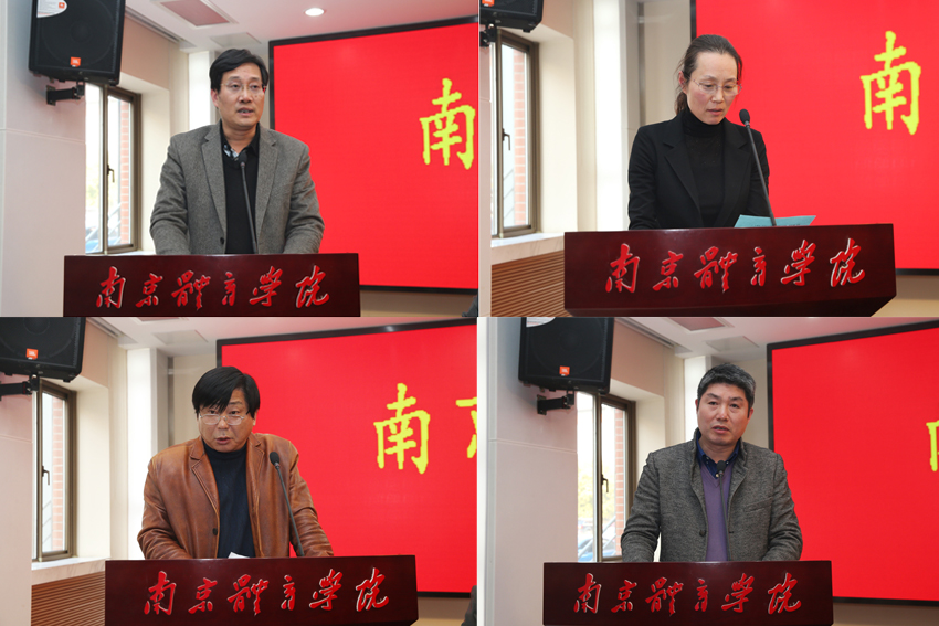 竞技训练学院院长陆玉林、休闲体育系主任于翠兰、人事处处长王成钢、基建处处长储小祥分别作表态发言