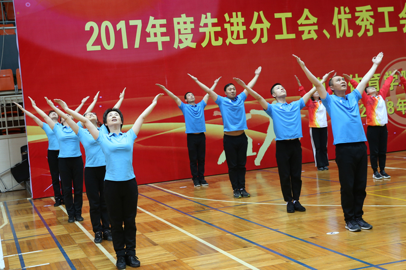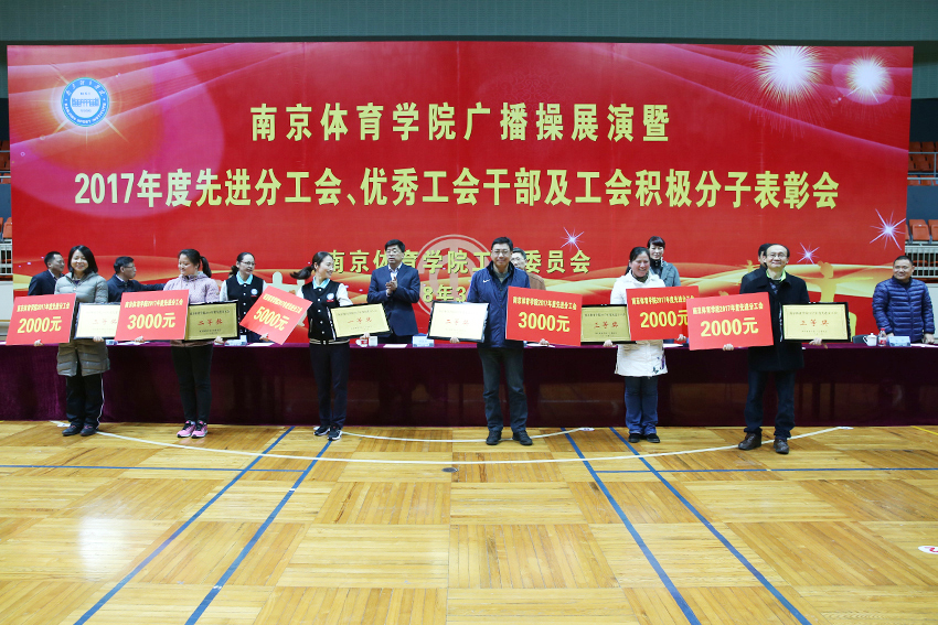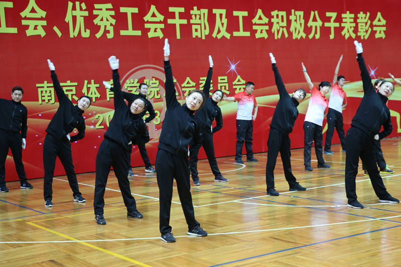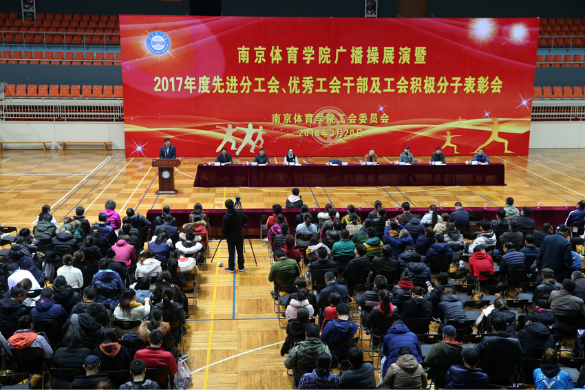 为进一步加强工会组织建设,丰富教职工文化体育生活,推动全民健身运动,3月20日下午,由校工会主办、民族体育与表演系承办的 “PA视讯集团入口教职工广播操展演暨2017年度先进分工会、优秀工会干部及工会积极分子表彰会” 在灵谷寺校区体育馆举行。校领导杨国庆、李江、肖爱华、黄步龙出席活动,江苏省教育科技工会副主席孙焱、高教部部长高顺岭、办公室主任孙剑受邀参加活动。参加活动的还有全校各分工会干部及校工会会员等500余人。会议由工会主席王加华主持。