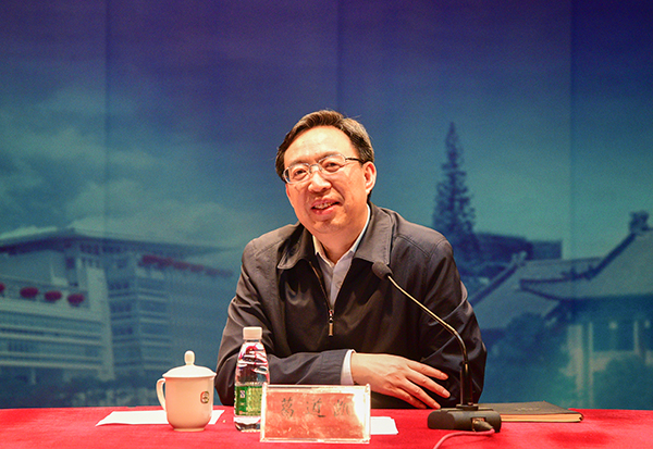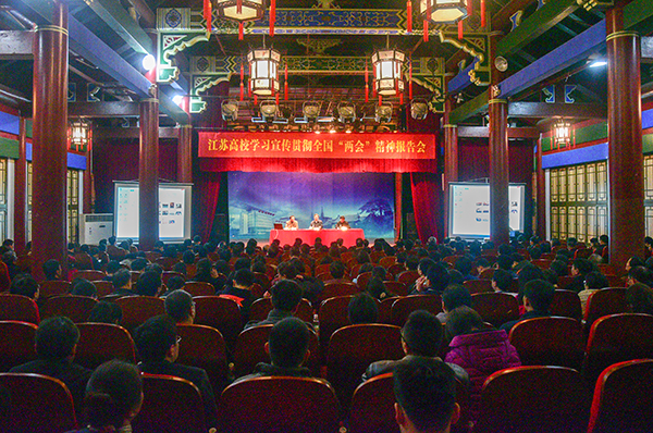 全国政协委员、民进中央常委、省政协副主席、南京师范大学副校长朱晓进传达全国政协会议精神