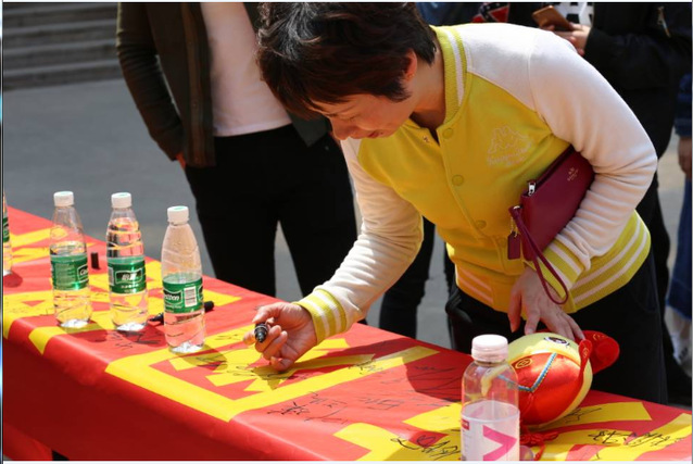 叶瑛在宣传横幅上签名