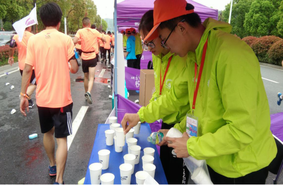 比赛开始后,每一位志愿者都全身心投入工作,服务热情空前高涨,在补给物资不够的情况下,尽最大努力来满足参赛者的需求。志愿者们还为参赛者鼓掌欢呼加油鼓劲,并在站点补给服务结束后认真做好赛场清理、协助工作人员完场补给站收场工作。
