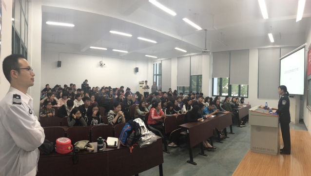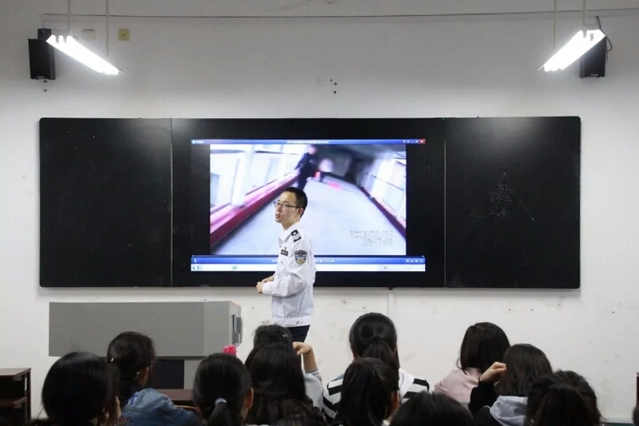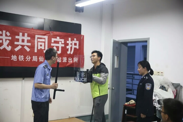 在活动中,周敏主要从地铁爆炸、纵火袭击、枪击及突发事故等如何处理的角度作出详细的讲解。随后在分会场410教室,周敏为同学们介绍一些基本防火、救火装备和对抗恐怖分子武器的使用并邀请同学们体验学习。在另一分会场411教室,徐鹏向同学们展示地铁线路运营情况及遭遇地铁突发情况如何处理。