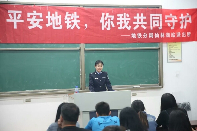 4月26日晚,运动系主办的“安全教育讲座——轨道交通安全出行及防暴逃生演练”讲座在南体仙林校区218教室开课。本次讲座特邀南京市公安局地铁分局仙林湖站派出所民警周敏,南京地铁设施保护办公室一、四号线区域负责人徐鹏担任主讲老师。仙林校区运动系、休闲体育系、运动健康系、体育系等各系共计100余人参加了本次讲座。
