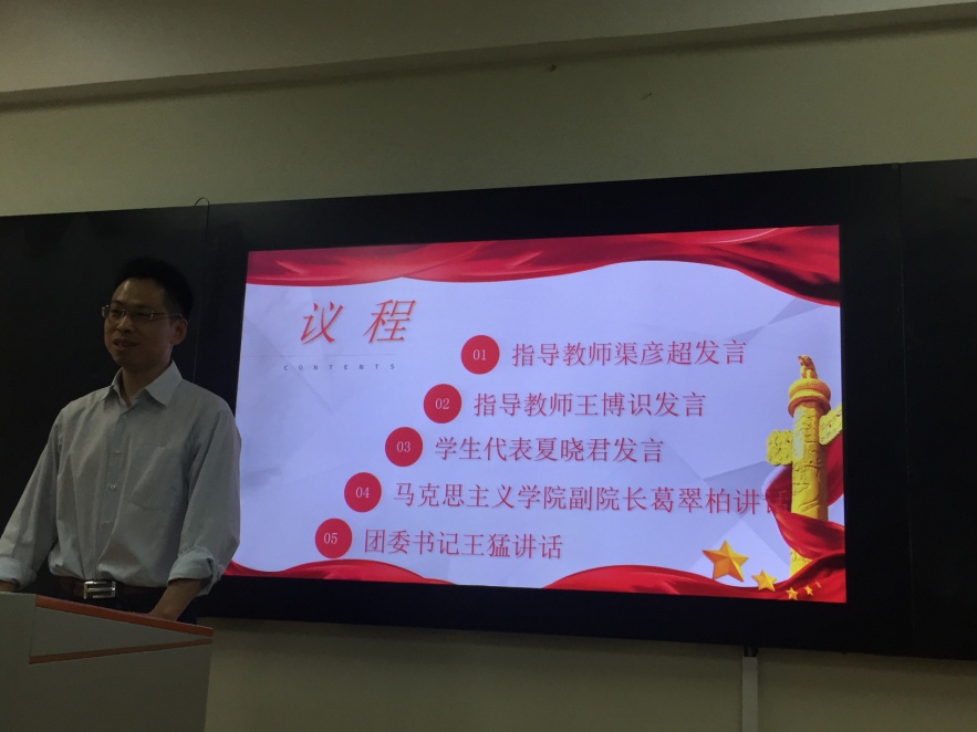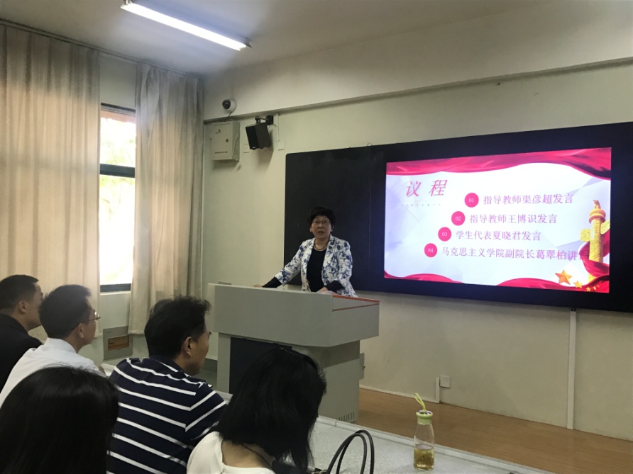 葛翠柏副院长回顾了马克思主义的时代意义,希望同学们以“学习”为重要抓手、以“传播”为重要使命、以“实践”为重要载体,把“马克思主义理论和习近平新时代中国特色社会主义思想”学习好、宣传好、践行好。并利用课余时间多参加理论学习、专家讲座、典型示范、志愿宣讲、直观体验、思想汇报、节日纪念、参观调研、评比竞赛、联谊活动、课题研究等形式多样的学习交流活动。