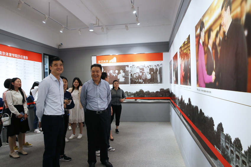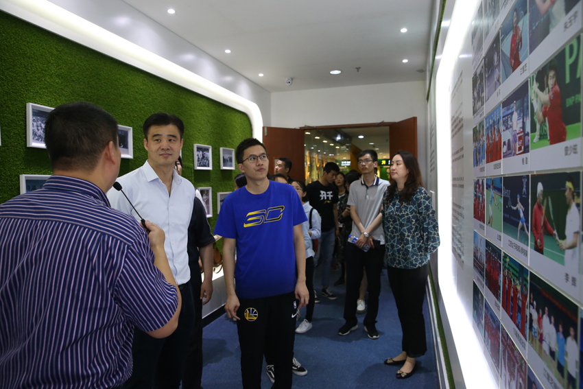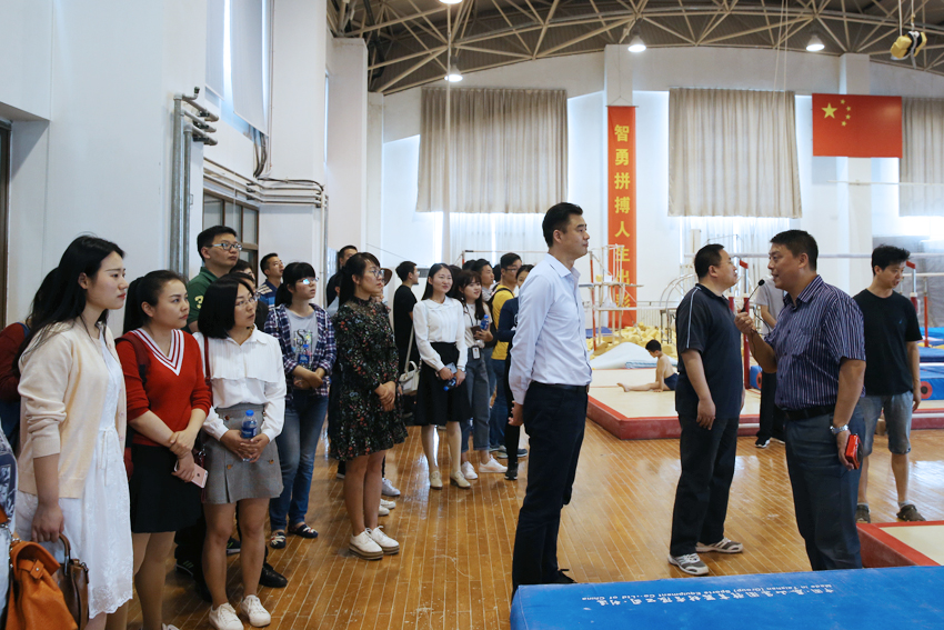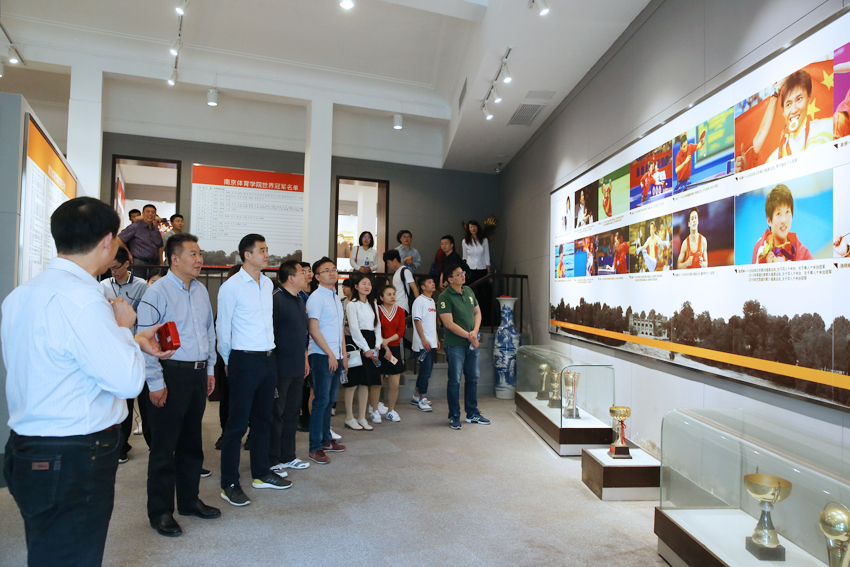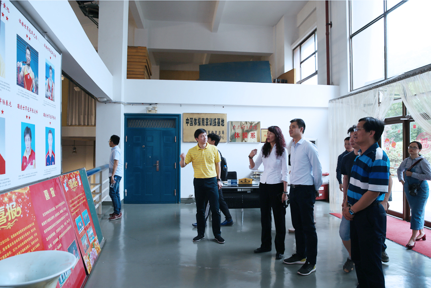 在PA视讯,马永欣一行首先参观了奥运冠军大道、国术场、校史陈列馆、中央体育场田径场、体操蹦床馆、江苏省运动训练与康复重点实验室、游泳馆、跳水花游馆和中国网球学院,了解了PA视讯的历史底蕴、办学成绩和训练情况。