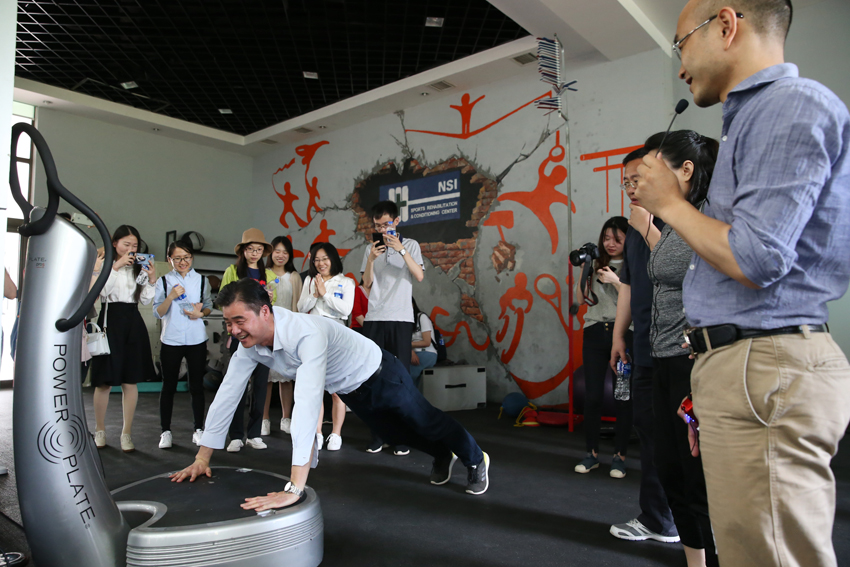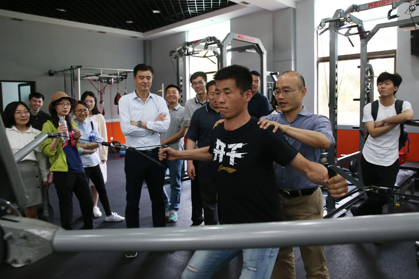 在江苏省运动训练与康复重点实验室体验健身器械