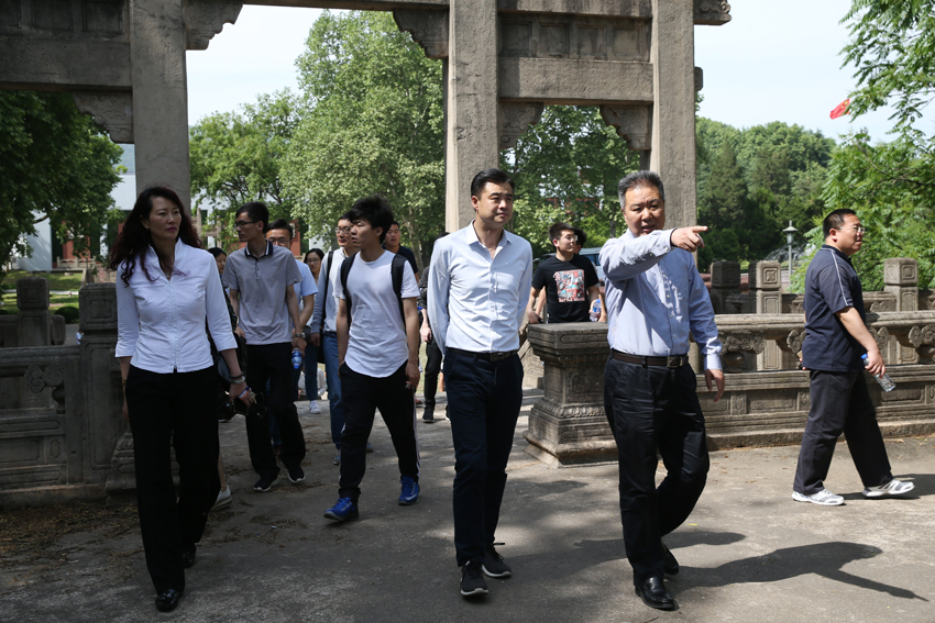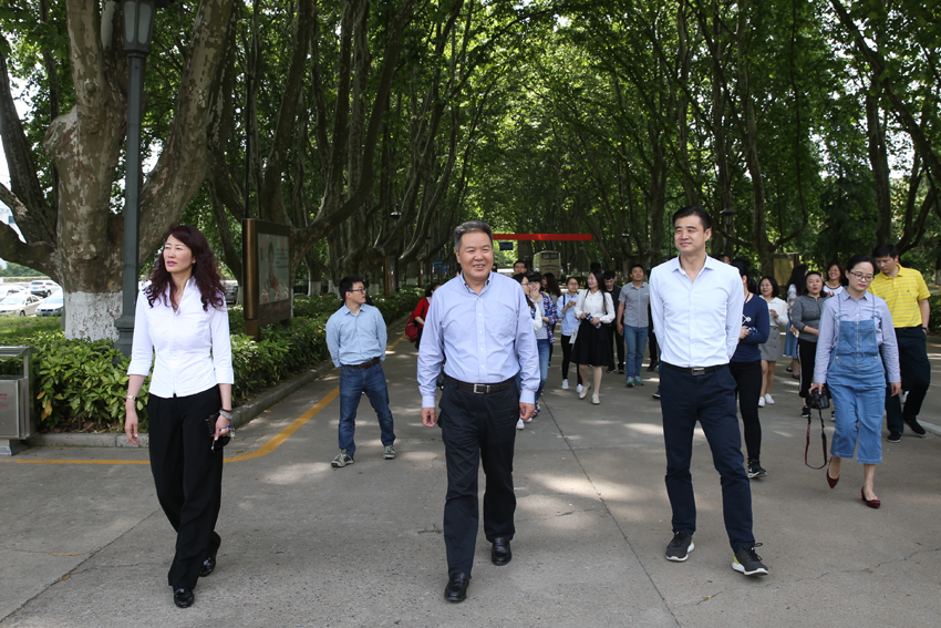 朱传耿书记(中)、肖爱华副校长(左)陪同马永欣副书记(右)参观奥运冠军大道