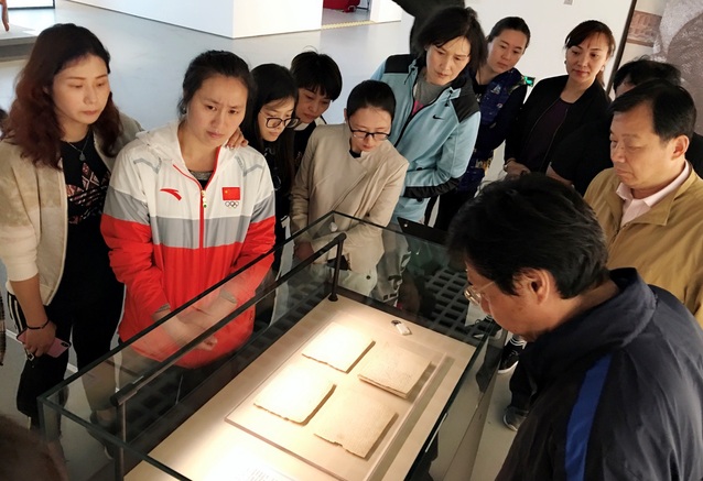 运动系党总支书记、系主任、足球学院院长袁野教授带队观展