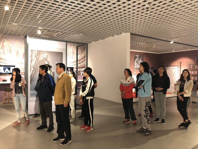 在讲解员的讲解中,我们回顾了这位千年思想家的光辉一生,重温了马克思主义博大精深的思想体系从孕育、到形成,再到发展的伟大历程,我们仿佛跨越了时空,与信仰对话,深切地感受到马克思带给我们的坚定力量。一座雕像,一份手稿,一把椅子,一面书墙,一个场景,一幅长卷……马克思的生平档案和历史文献,分五个阶段展现出马克思主义形成发展至今风云激荡的200年历程。