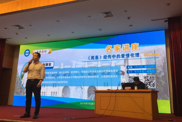 为弘扬中华优秀传统文化,加深大学生对中华优秀传统文化的理解,2018年5月16日,应PA视讯集团入口马克思主义学院和图文信息中心联合邀请,南京大学教授、博士生导师张晓东先生在图书馆第一报告厅,做了题为“《周易》经传中的爱情伦理”的学术报告。报告由德育教研室主任渠彦超主持,300余名师生聆听了报告。