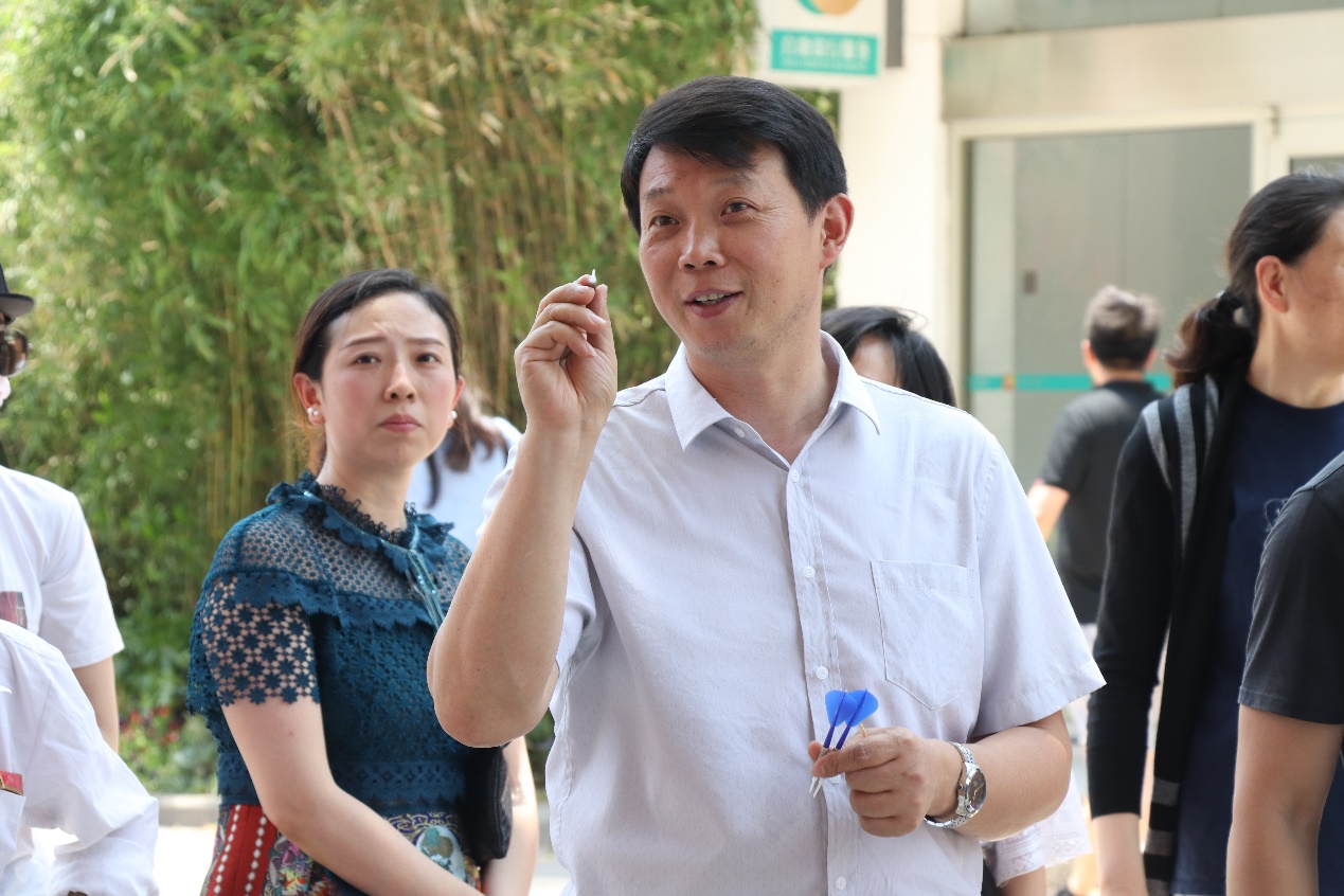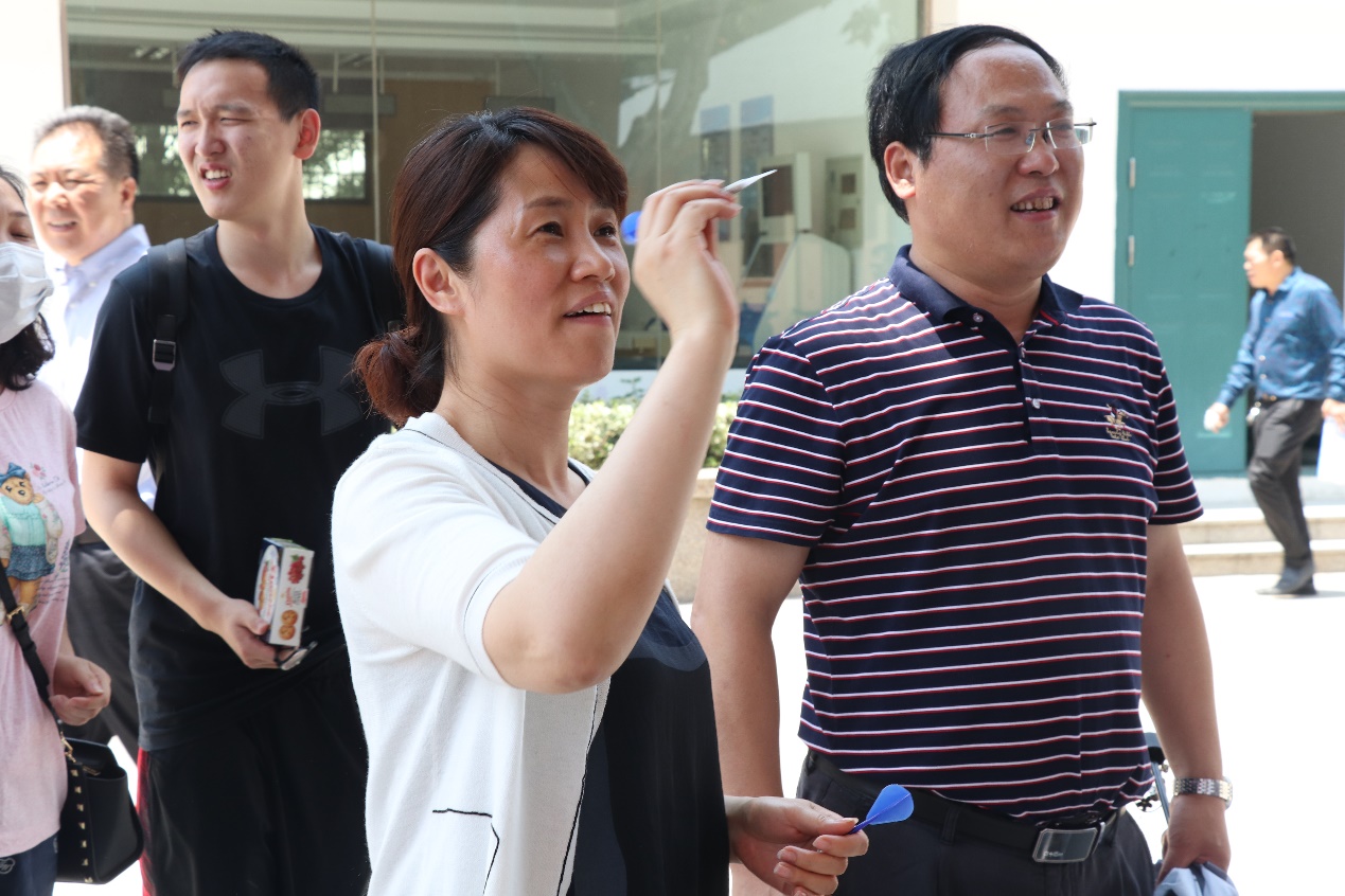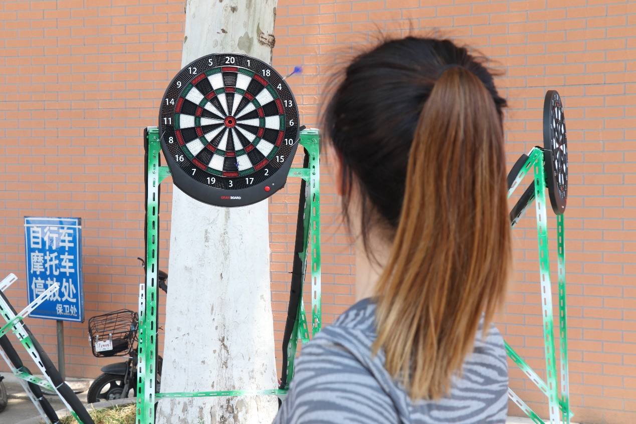 最后一天的飞镖活动关注度极高,路过的师生都被飞镖所吸引,跃跃欲试,感受投掷飞镖的乐趣。高分赛现场人头攒动,师生纷纷排队进行投掷,现场欢声笑语,气氛热烈。