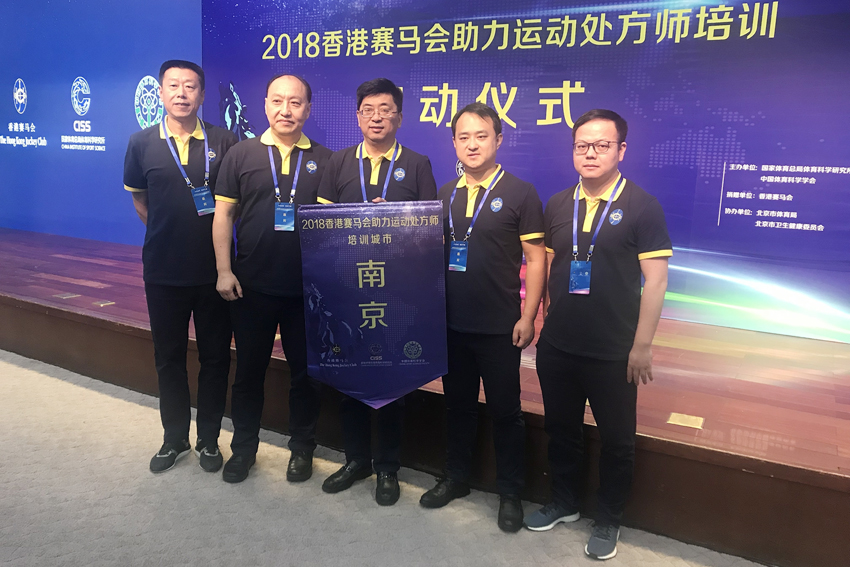 5月19日上午,杨国庆校长率运动健康科学系孙飙主任、江苏省卫计委疾控处孙超副主任科员、继续教育部朱海峰以及运动健康科学系孙强一行5人,到国家体育总局领任务接战旗,参加由总局体育科学研究所和中国体育科学学会主办、香港赛马会赞助的”2018香港赛马会助力运动处方师培训启动仪式”。
