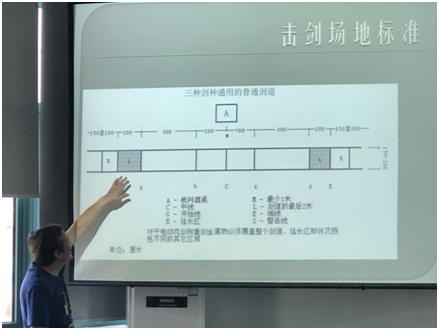 储老师向同学们介绍最新的击剑场地标准