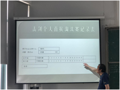 储老师向同学们展示个人淘汰赛记录表