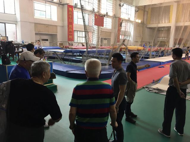 督导组在体操队督查,与领队黄旭交流