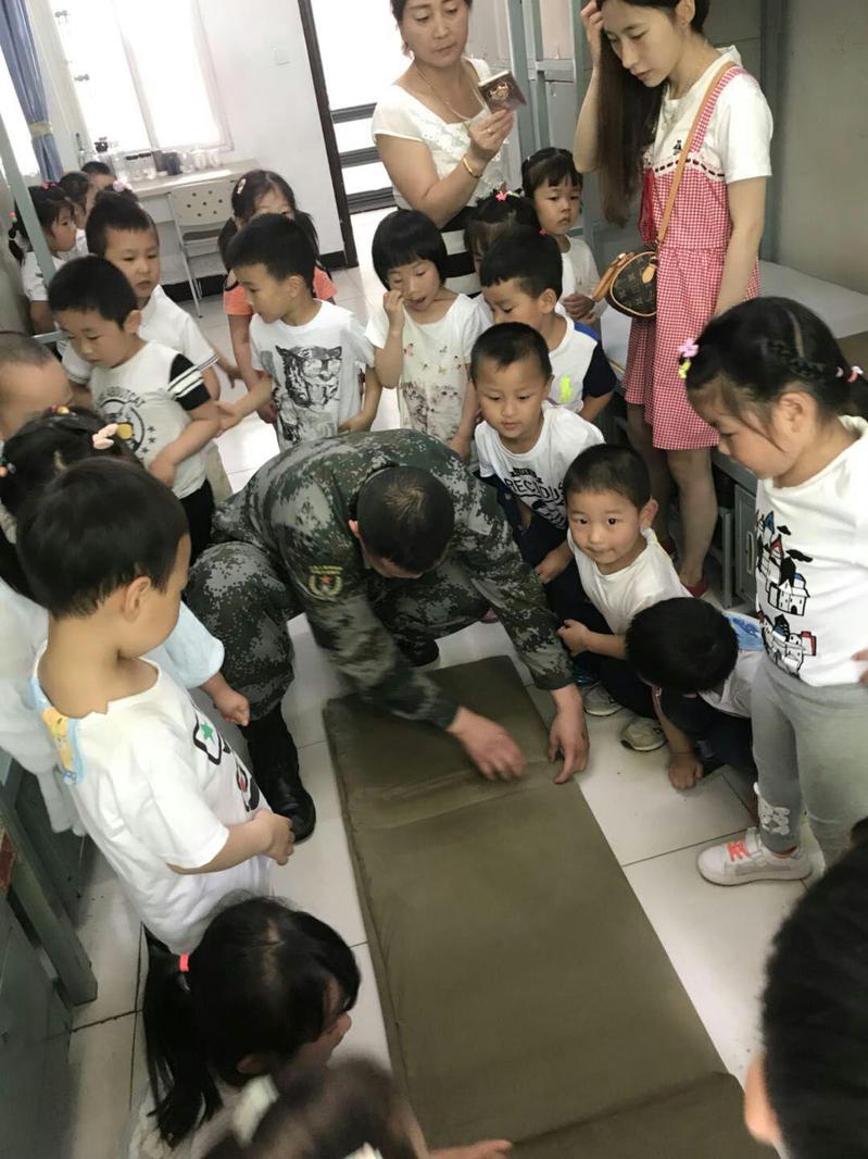 清晨,天气虽有些闷热,但解放军叔叔个个着装整齐、精神抖擞,以饱满的精神、昂扬的士气,展现出武威之师、文明之师的精神面貌。部队官兵们对体院幼儿园孩子们的到来表示了热烈欢迎。解放军叔叔为小朋友们表演了军体拳、军体操及队列练习,精彩的表演不时赢得了孩子们阵阵热烈的掌声。在观看了解放军内务整理后,官兵还与孩子们互动,让孩子们学习内务整理。
