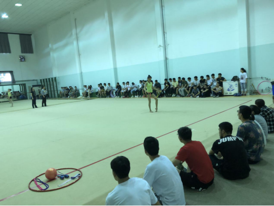 首先同学们有序进入场馆,由艺术体操队个人项目组教练为体育教育专业学生介绍了艺术体操个人项目组的基本概况,艺术体操队的运动员们也分别进行专业、优美的动作展示。紧接着,同学们又参观了艺术体操集体项目组,教练为大家介绍了艺术体操的团体项目概况,艺术体操队运动员们为大家展示了两套节目,在场的同学掌声不断,欣赏着艺术体操带来的独特魅力。