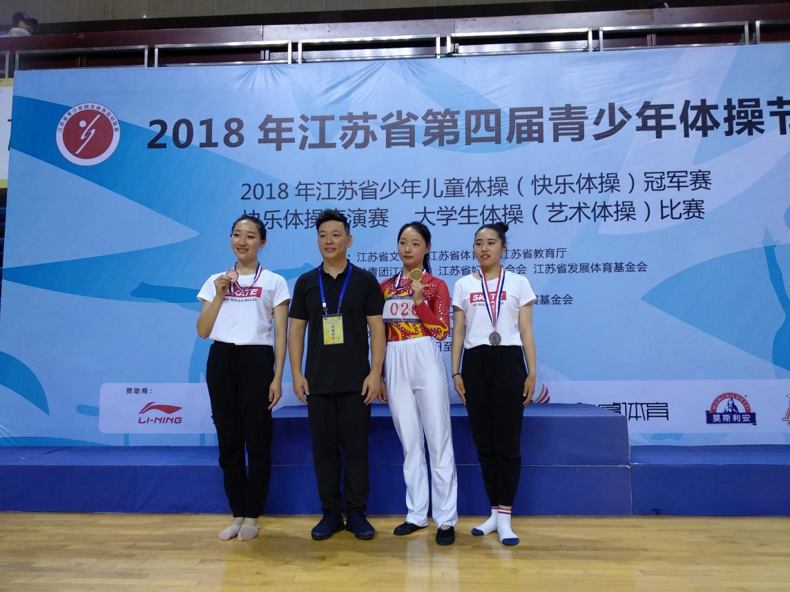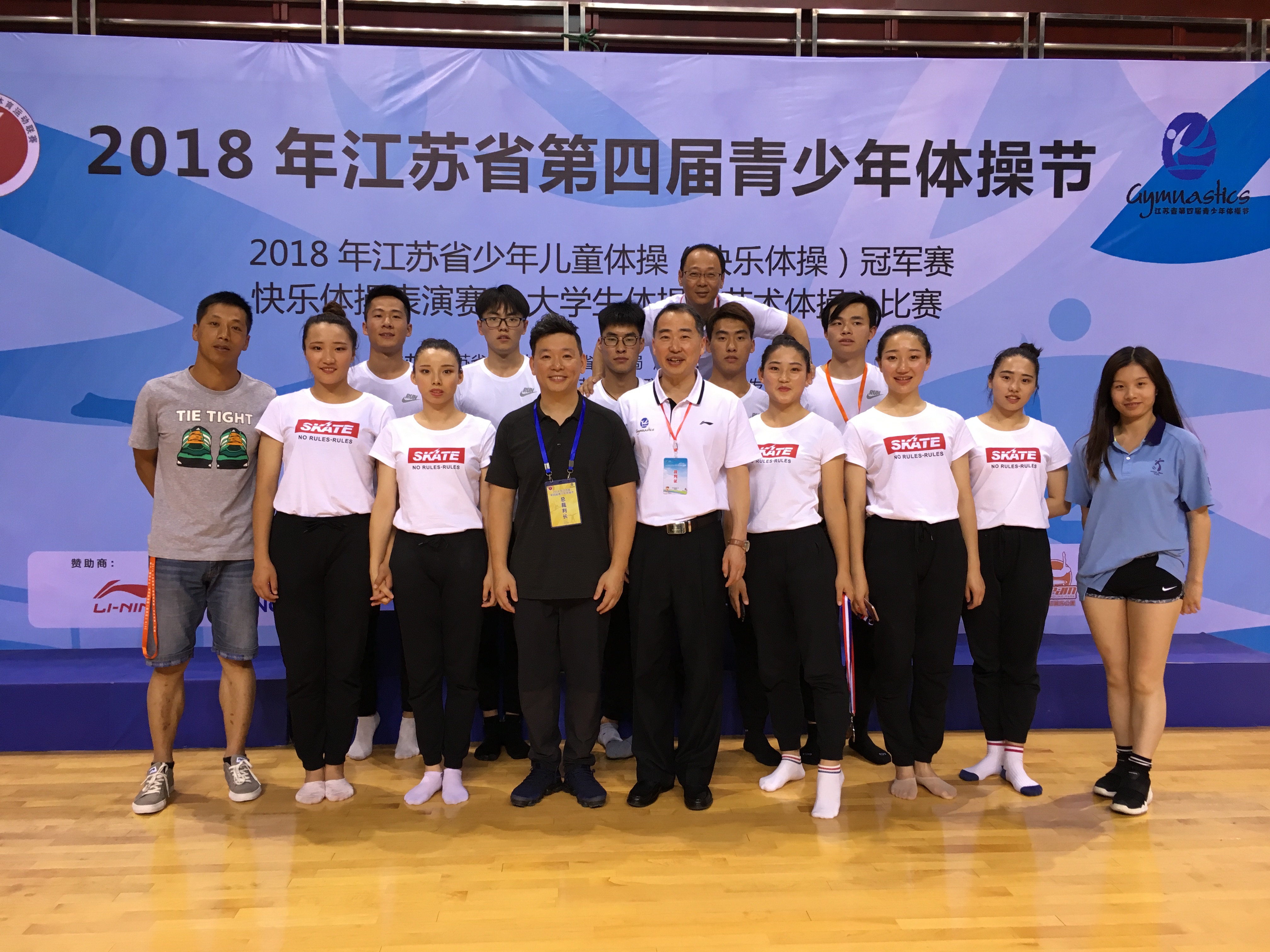 6月3日,江苏省第四届体操节高校体操比赛在常州圆满落幕。PA视讯民族体育与表演系体操教研室主任杜家俊老师、张猛老师、周靖弦老师、体育系杨丽宁老师及体育教育专业10名同学组成的代表队参加了本次比赛。此次比赛从6月2日开始,同场比赛为期半天。