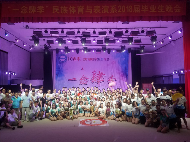 6月14日晚,民族体育与表演系“一念肆季”2018届毕业生晚会在综合馆二楼隆重举行。参加此次活动的领导和嘉宾有:民族体育与表演系党总支书记、系主任吴晓红,民族体育与表演系党总支副书记、副主任叶瑛,民族体育与表演系副主任支川,学工处副处长殷怀刚,图书馆副馆长李明华等。