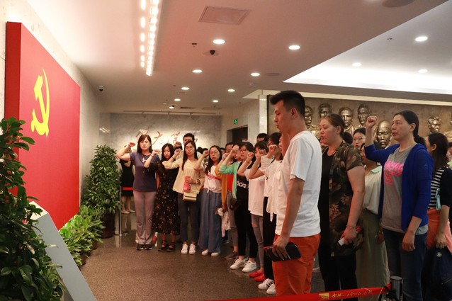 重温入党誓词,加强党性修养。在上海·中共一大会址内,在党旗的映衬下,体育系全体党员同志右手握拳,面对党旗,重温了入党誓词,接受了一次难忘的精神洗礼。正如总书记所说,“我们走得再远,都不能忘记来时的路。”“只有不忘初心、牢记使命、永远奋斗,才能让中国共产党永远年轻。”铿锵有力的话语,点出的不仅是中国共产党人的使命和担当,也开启了体育系党员同志心中那扇“叩问初心”的大门。