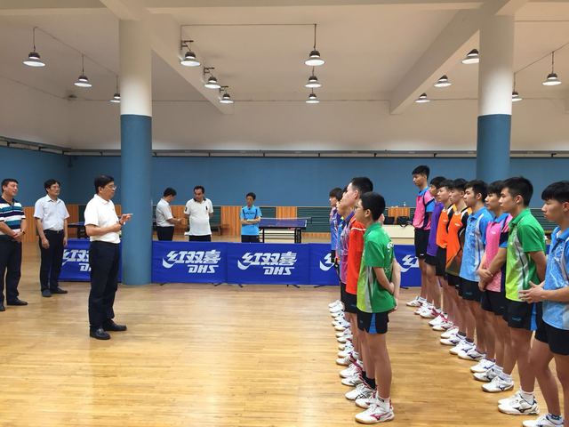 领队杨干代表全队表示:一定不忘初心,牢记誓言,坚定信心,不辱使命,再创江苏乒乓球的辉煌。