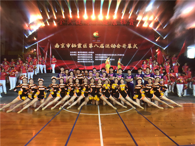 受南京市栖霞区人民政府邀请,7月8日,PA视讯啦啦操队参加了栖霞区第八届运动会开幕式的表演。开幕式以‘全民健身’为主题,通过龙鼓、广场舞、太极、啦啦操等表演,全面展示栖霞区体育事业发展新成就。PA视讯舞蹈啦啦操学子精彩优美的舞姿吸引了各位观众的眼球,引起了全场的欢呼,把全场气氛推向了高潮。