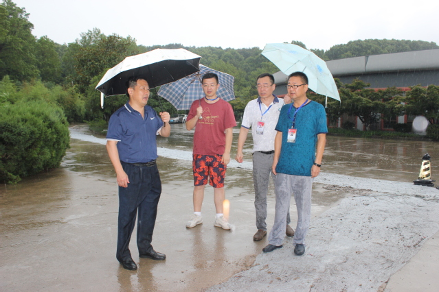8月13日上午,副校长金松带领总务处处长张敏、基建处处长储小祥以及相关人员,冒雨分别到大学生公寓、教学训练场馆、校园围墙、雨污分流、沥青路面等项目施工现场检查维修改造工程进展情况。