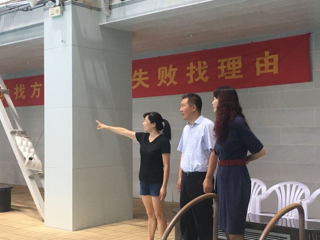 朱传耿书记(中)、肖爱华副校长(右)与跳水队教练员交流