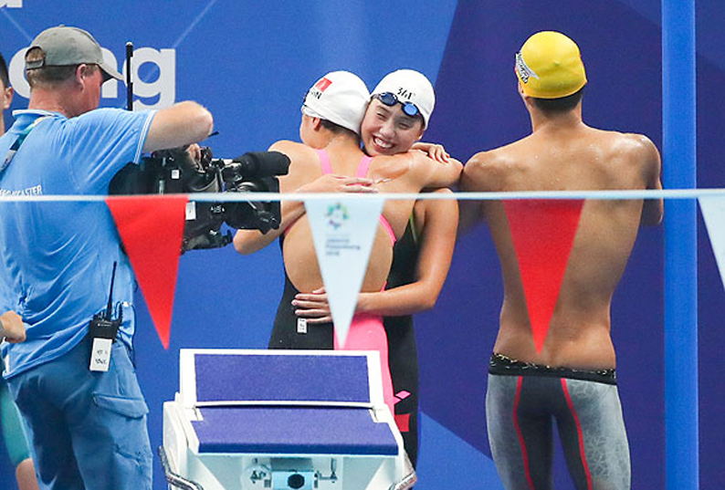 张雨霏、史婧琳获男女4x100米混合泳接力赛金牌
