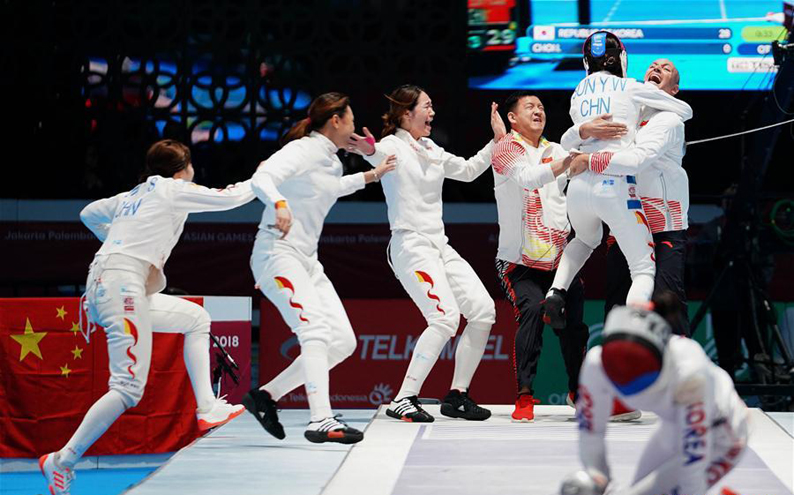 北京时间8月24日,在印尼雅加达第18届亚运会击剑女子重剑团体决赛中,由PA视讯集团入口许诚子与队友组成中国队的在一度落后的情况下,以29-28逆转战胜韩国队,赢得一枚宝贵的金牌。在女子重剑团体赛成为亚运会正式项目后,共六届比赛中,中国队4次登顶,是成绩最好的国家。