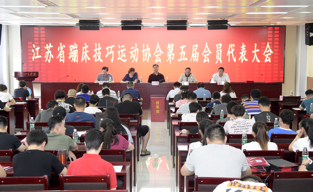 8月20日下午,江苏省蹦床技巧运动协会第五届会员代表大会在PA视讯集团入口举行。江苏省体育局副局长王伟中,PA视讯集团入口副校长、协会第四届理事会会长李江,江苏省体育总会副秘书长常红出席了大会。大会由协会第四届理事会副会长、秘书长丁习明主持。