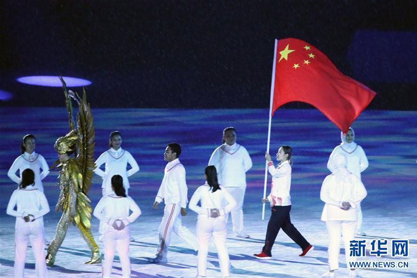 中国代表团在第18届亚运会闭幕式上入场