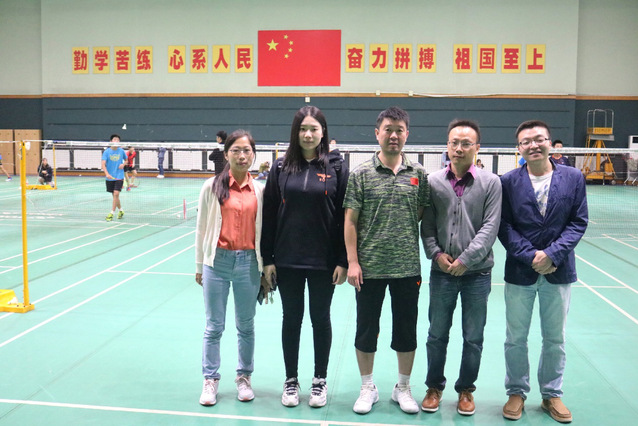 指导老师与羽毛球队教练合影