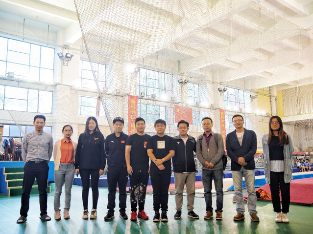 指导老师与蹦床队教练合影