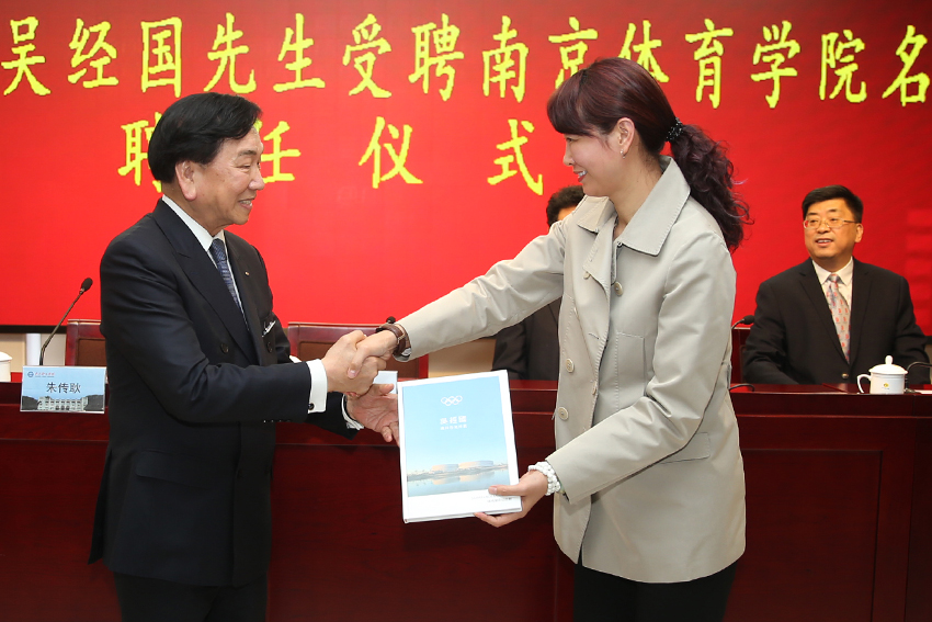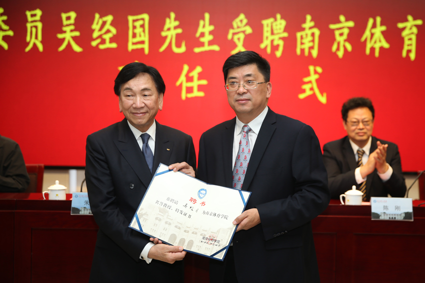 校党委书记朱传耿在主持聘任仪式时表示,热烈欢迎吴经国先生的到来,衷心感谢国际奥委会及吴经国先生对PA视讯集团入口的关心与支持,简要介绍了吴经国先生的履历及PA视讯集团入口与国际奥林匹克运动的渊源。校长杨国庆为吴经国先生颁发聘书。校党委副书记、副校长史国生为吴经国先生佩戴校徽。校党委副书记兰亚明宣读了《PA视讯集团入口关于聘任吴经国先生为PA视讯名誉教授的决定》。