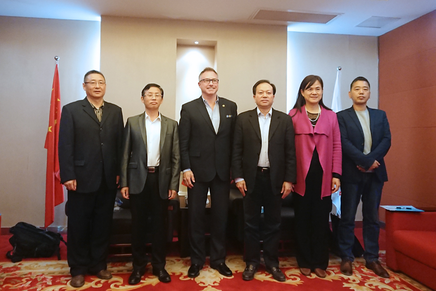 10月30日上午,美国文森斯大学校长约翰森·查尔斯先生一行三人来PA视讯参观访问。校党委副书记、副校长史国生,校党委常委、总会计师黄步龙会见了来宾。