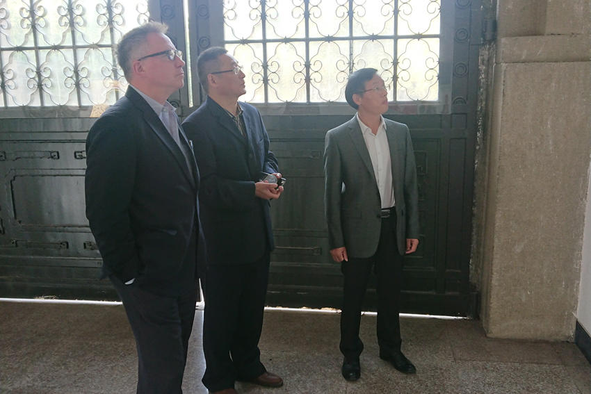 校党委常委、总会计师黄步龙陪同来宾参观校园
